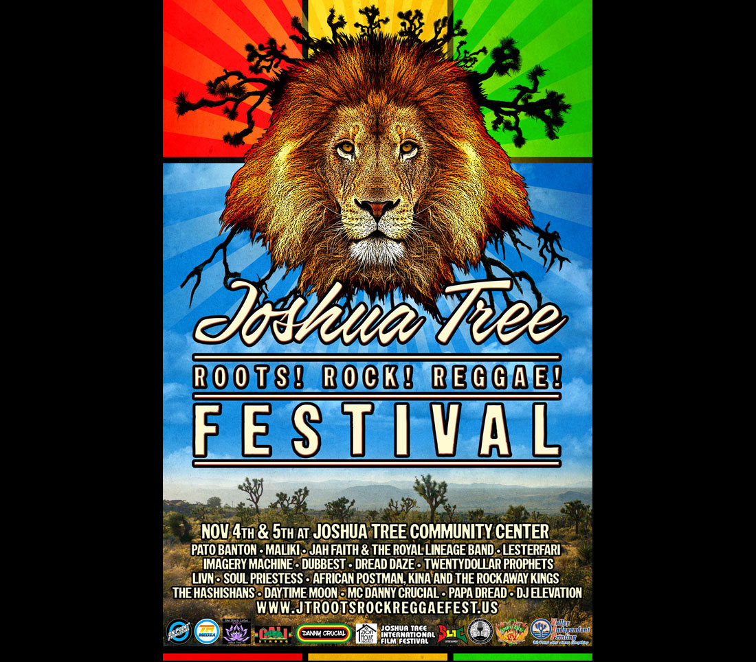 Held in the shadows of the infamous Joshua Tree National Park, in a community internationally known for its eclectic arts and music community, the JTRRRF takes place on the grounds of the Joshua tree Community Center. Besides live music, the JTRRRF will offer a variety of presentations and exhibits aimed at stimulating attendees, including: DJs spinning the best in lounge, dub and classic reggae sounds; visual and performance artists; crafts vendors and culinary delights.